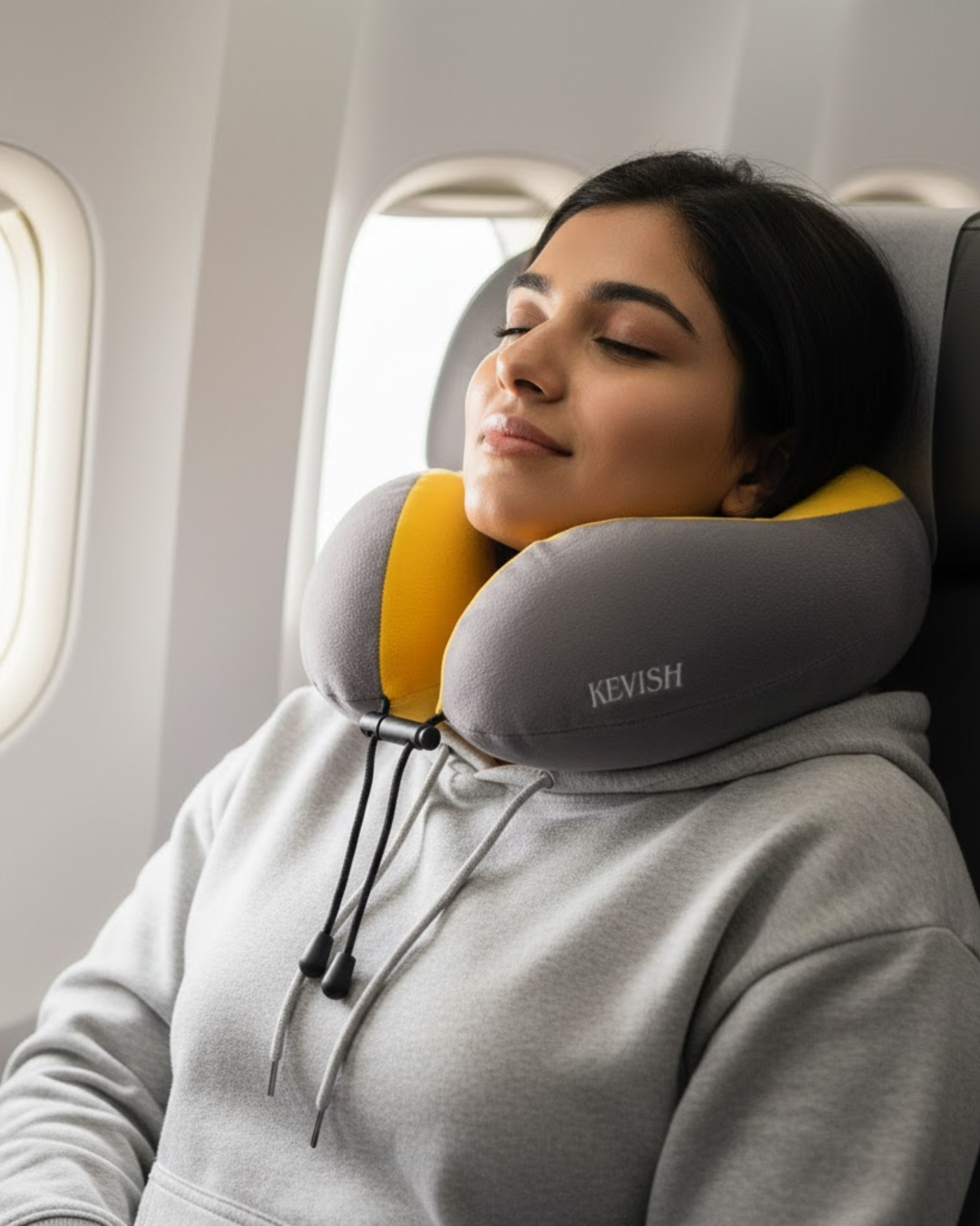 Kevish Ergonomic Travel Neck Pillow – Grey & Yellow